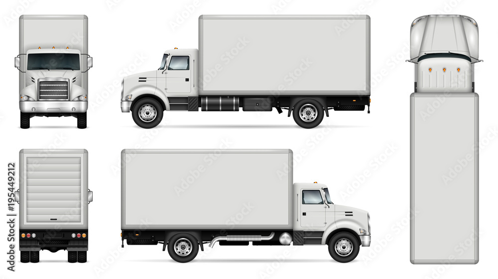 Truck Vector Mock Up Isolated Template Of Lorry On White Background Vehicle Branding Mockup Side Front Back Top View All Elements In The Groups On Separate Layers Easy To Edit And Recolor Stock Vektorgrafik